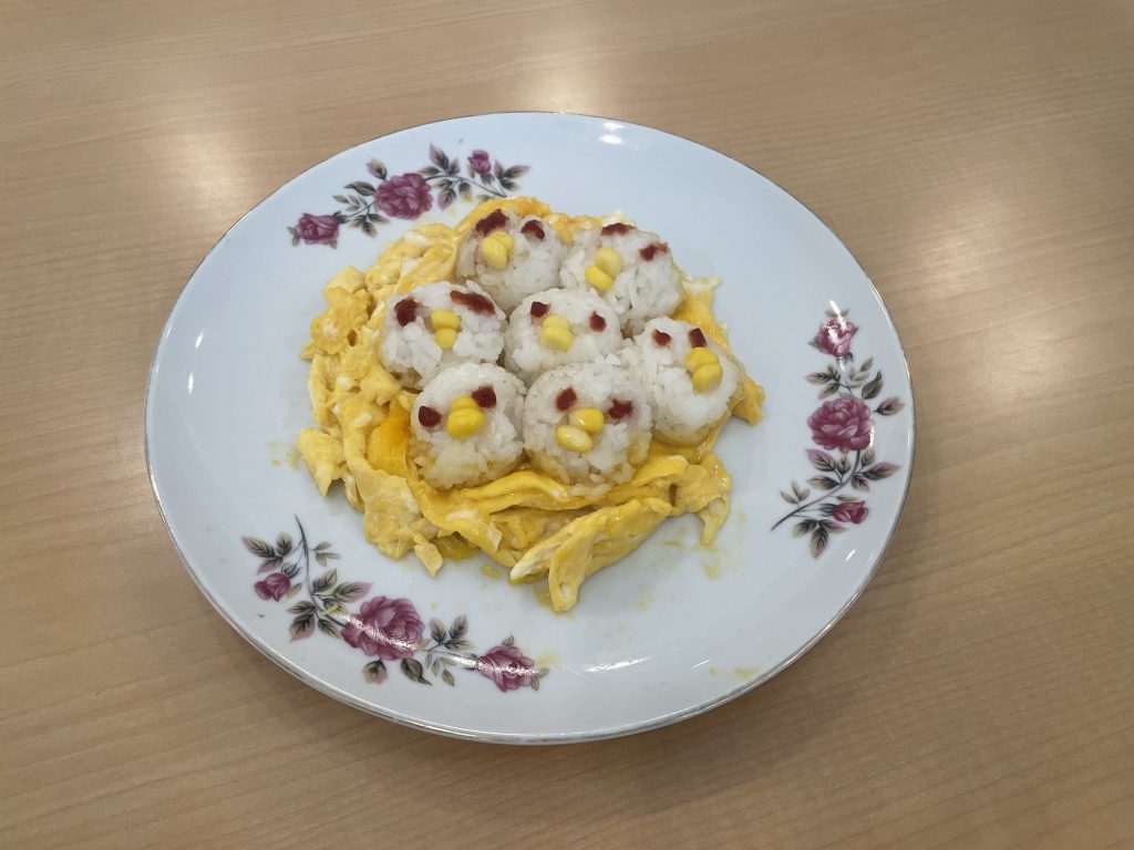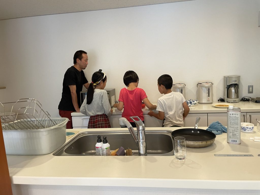 今日は雨予報なので、隣のマンションの集会所を使ってオリジナル料理。スーパーへのお買い物にも子ども達だけで行って、力を合わせて作り上げました。