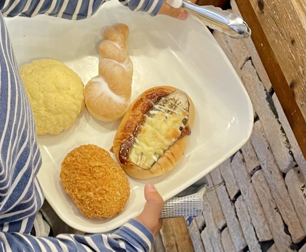 おいしいパン屋さんでは、ハロウィンのお菓子を配っていました。それをもらった時、上級生の子達がすぐに店員さんにアレルギー物質を聞いてくれました。食物アレルギーの子が下級生にいる事を知っていたのです。すごいな〜