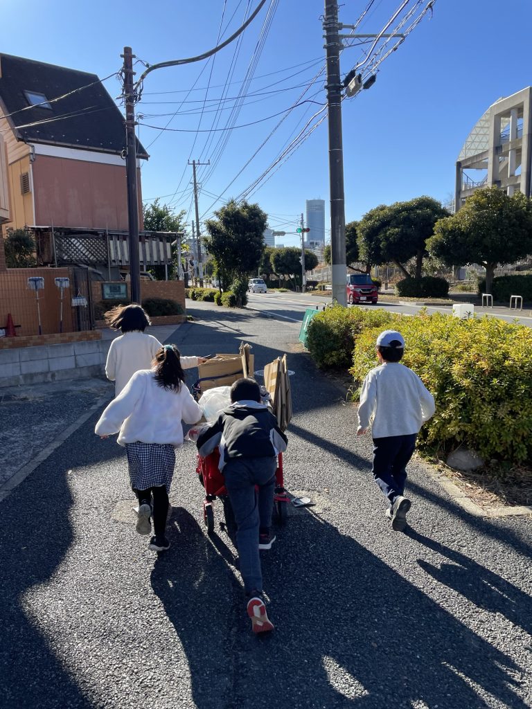 最初の活動は年末年始に溜まった大量の資源ごみを資源循環センターに運ぶこと。カートに山ほど乗せて、かわるがわる引いたり押したり。